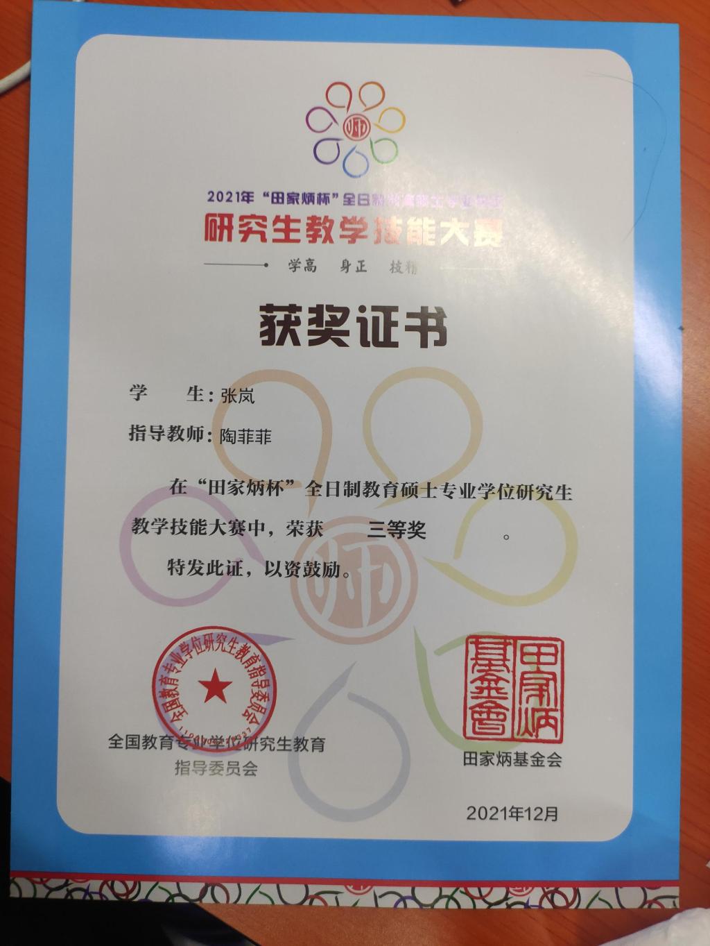 免费色情影片张岚同学在“2021年‘田家炳杯’全日制教育硕士专业学位研究生教学技能大赛”国赛中获得佳绩