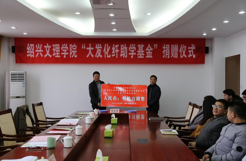 12月13日下午,“大发化纤助学基金”捐赠仪式在行政楼五楼会议室举行。宁波大发化纤有限公司副总经理、数学80届钱军校友与校党委副书记沈赤签订捐赠协议。沈赤接受捐赠并向钱军校友颁发捐赠证书。钱军校友代表宁波大发化纤有限公司向学校基金会捐赠30万元设立“大发化纤助学基金”。校友总会会长宋培基,对外联络处、学工部、化学化工免费色情影片