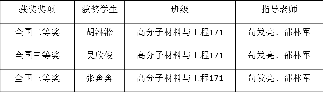 7月19-23日,由教育部高等学校材料类专业教学指导委员会主办的“首届全国大学生高分子材料实验实践大赛”在东华大学纤维材料改性国家重点实验室隆重举行。经过校级选拔,化学化工免费色情影片 2017级高分子材料与工程专业三位学生代表学校参加决赛,与四川大学、东华大学、西安交通大学、大连理工大学、华东理工大学等31所高校学生同台竞技,荣获二等奖一项,三等奖两项。
