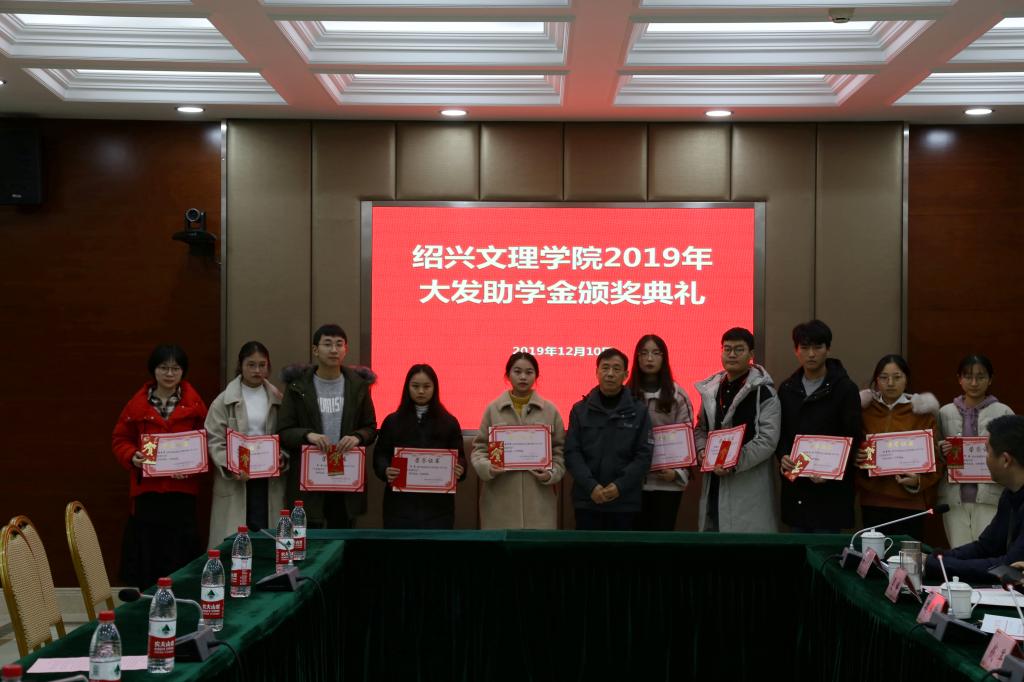 12月10日上午,2019年“大发助学金”颁奖典礼在铁城科教馆一楼会议室举行。校党委副书记沈赤,宁波大发化纤有限公司副总经理钱军先生,学工部、对外联络处、化学化工免费色情影片