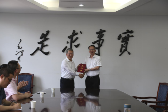 人事处负责人宣读了聘任文件,张宏副校长为阳永荣教授颁发“鉴湖学者”讲座教授聘书。