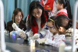 与塔山小学教育集团共建“亲情童创”科学实践基地,开展亲情实验室和亲情创作坊实践活动,通过丰富多彩的科普活动,推进政策全面落地,既提升了小学生的科学素养,也为免费色情影片师范专业学生提供了锻炼的机会,“双减”变双增,更是双赢。