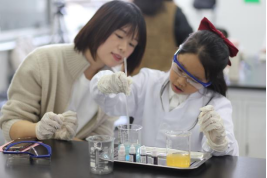 授牌仪式结束后,学生与家长在科普志愿者的带领下,前往科普基地开展亲情实验,体验奇妙的科学世界,增进家长与孩子之间的感情,通过“雾中精灵——神奇的丁达尔效应”和“彩虹雨密度实验”两个趣味实验,培养动手能力,激发学习兴趣,在发现问题,寻找答案,解决问题的过程中,提升科研探索的精神。