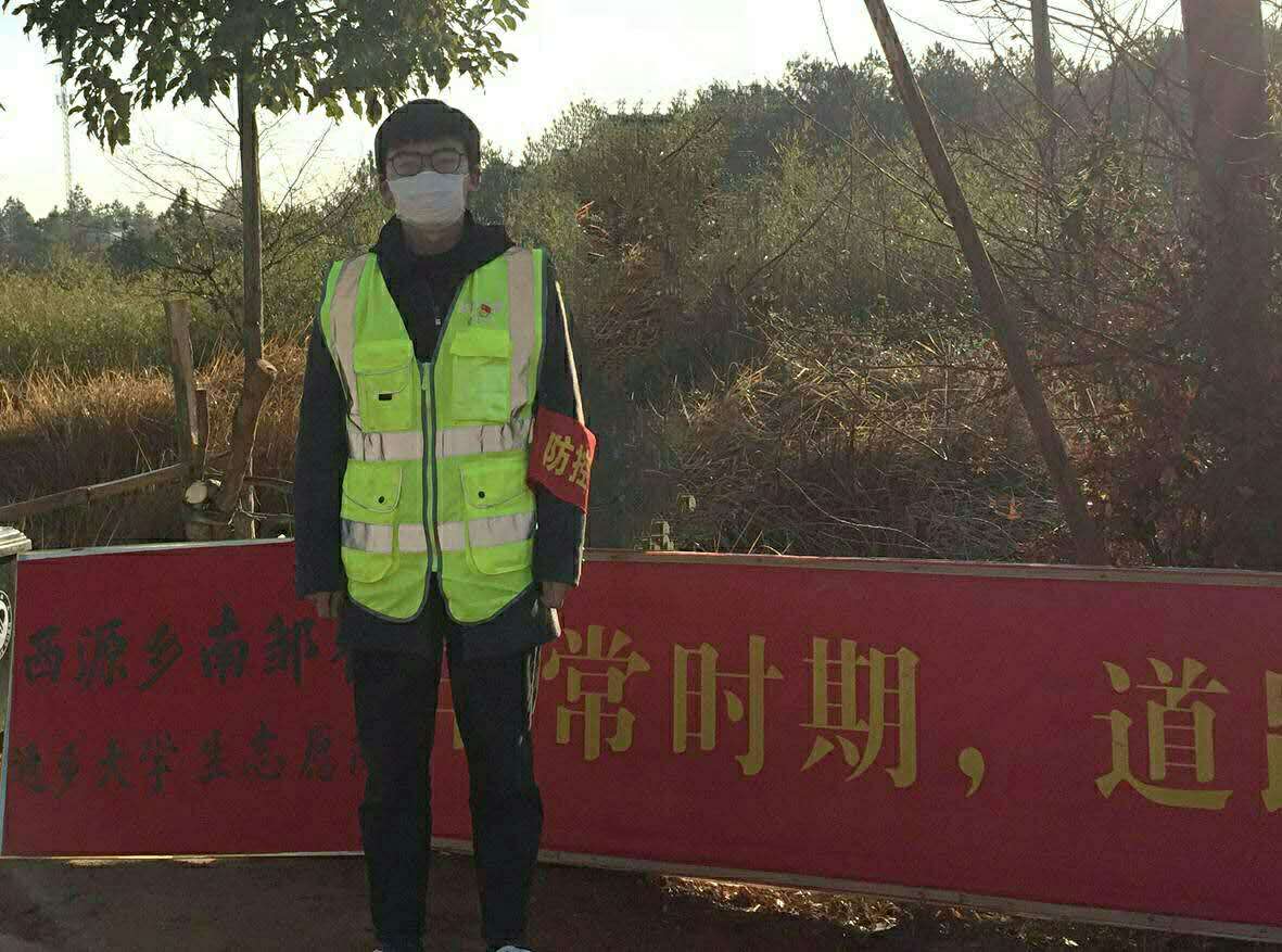 化学化工学院应用化学161班中共党员邹冬生,他积极响应组织返乡大学生参与疫情防控的号召,主动到居住地南邹村委会报道。在村党委书记和村主任的指挥和带领下,他被分配在村口站岗一职。他站在村里主要进出路口,为村民测量体温,耐心地与村民沟通,劝导他们疫情期间尽量少出门、戴口罩。他说:“在志愿服务中,会遇到一些不支持不配合的村民,但我还是会耐心劝导,坚守自己的岗位,当好村里的‘守门员’。相信在大家的共同努力下,我们很快能迎来疫情防控的胜利。�