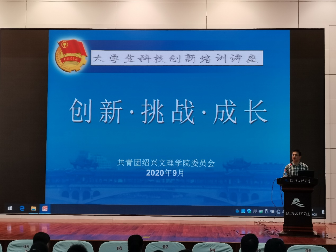 2020�9�21日上� ,我院在铁城科教馆报告厅开展了大学生科技创新培训讲座,本次邀请的主讲人是学院分团委书记韩超峰老师。此次讲座主要由创新·挑战·成长三个方面组成,旨在培育和增强大学生的科技创新意识,激发对科技创新活动的兴趣�